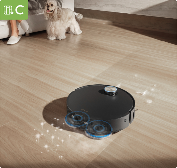 The Matrix10 Ultra seamlessly finds its way through various furniture shapes, steep terrain, and tricky spaces, ensuring any mess in its path is fully dealt with—all in real time.