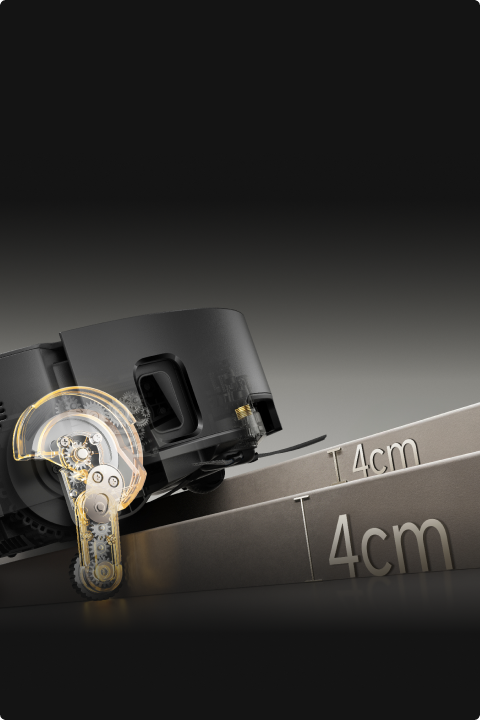 The Matrix10 Ultra has a retractable DToF system for 360°* scanning, creating detailed blind-spot-free maps for precise navigation without spinning. When lowered, its height reduces to 89mm*, allowing access under low furniture that other vacuums can’t reach.