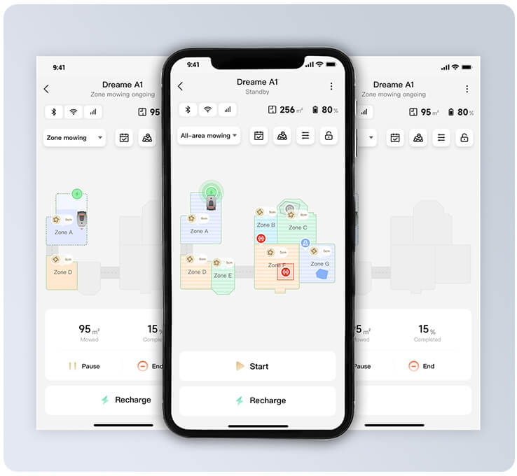 With All-Area, Zone, Edge, and Spot Mowing Modes, A1 easily meets your diverse mowing needs.