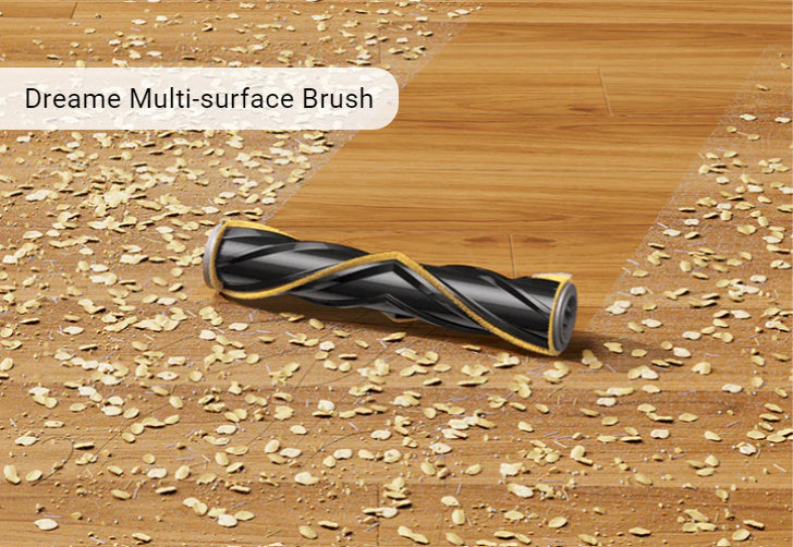The multi-surface brush, combined with a potent 150AW suction and enhanced by blue lighting, ensures meticulous cleaning by capturing even the smallest particles of dirt and debris.